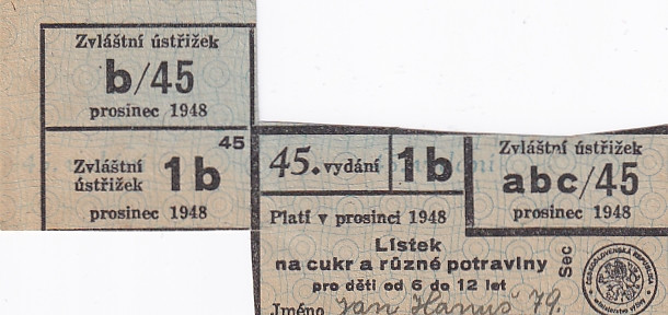 Lístek na cukr a různé potraviny pro děti od 6 do 12 let 45./1b Prosinec 1948