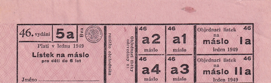Lístek na máslo pro děti do 6 let 46./5a leden 1949