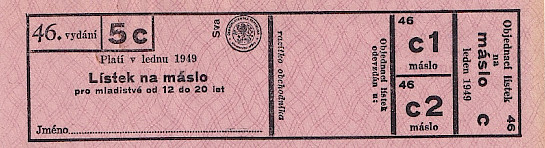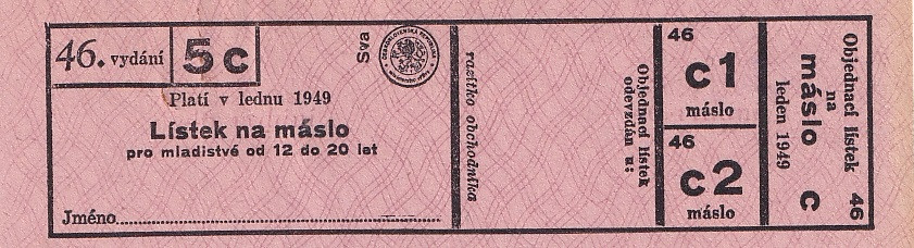Lístek na máslo pro mladistvé od 12 do 20 let 46./5c Leden 1949