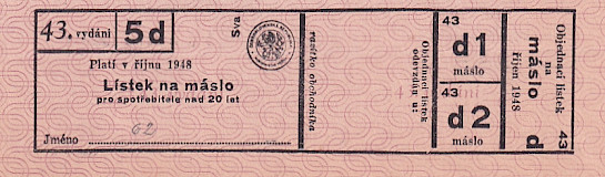Lístek na máslo pro spotřebitele nad 20 let 43/5d říjen 1948