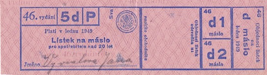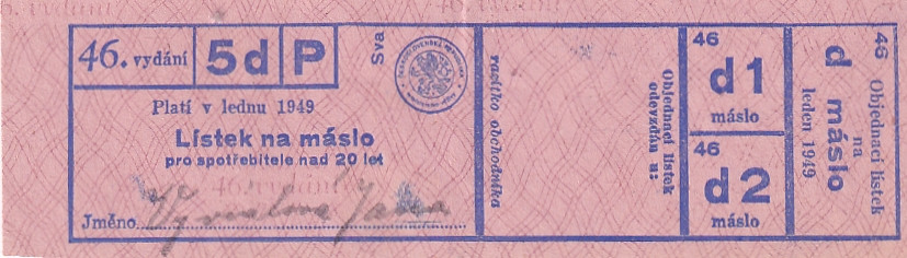 Lístek na máslo pro spotřebitele nad 20 let 46./5d/P Leden 1949
