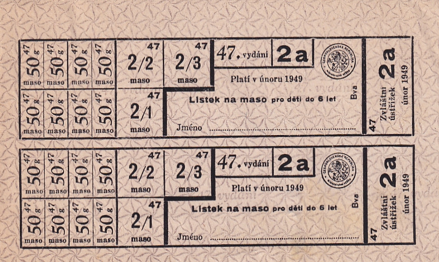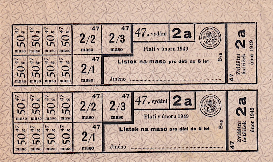 Lístek na maso pro děti do 6 let 47./2a Únor 1949