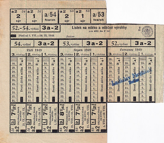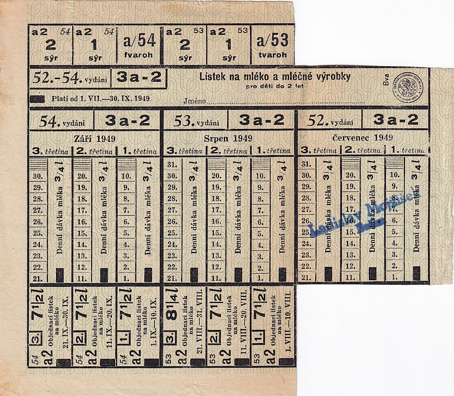Lístek na mléko a mléčné výrobky pro děti do 2 let 52.-54./3a-2 1.VII.-30.IX.1949