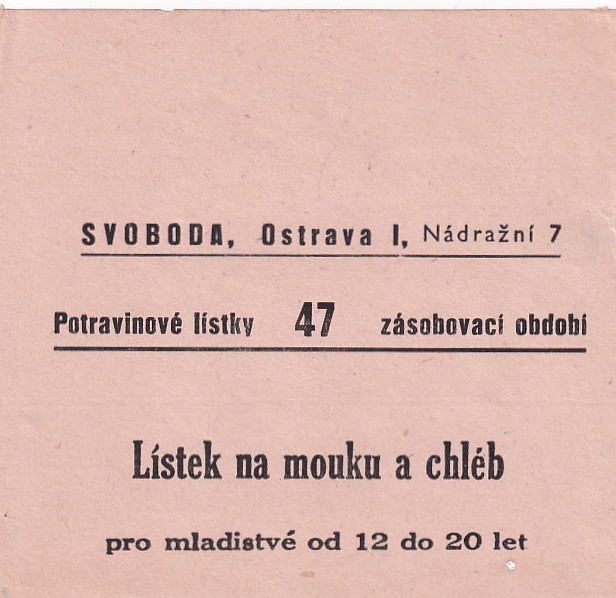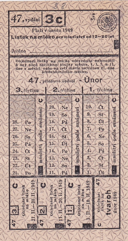 Lístek na mléko pro mladistvé od 12-20 let 47./3c Únor 1949