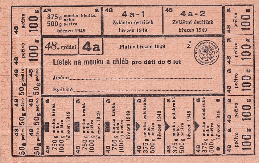 Lístek na mouku a chléb pro děti do 6 let 48./4a Březen 1949
