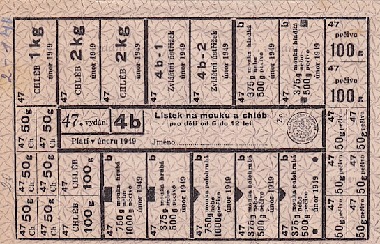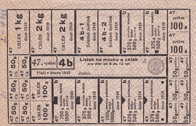 Lístek na mouku a chléb pro děti od 6 do 12 let 47./4b Únor 1949