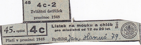Lístek na mouku a chléb pro mladistvé od 12 do 20 let 45./4c Prosinec 1948