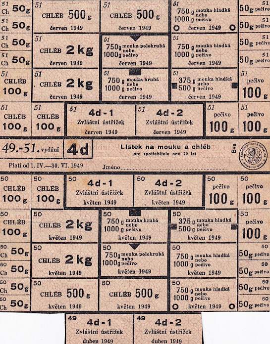 Lístek na mouku a chléb pro spotřebitele nad 20 let 49.-51./4d 1.IV.-30.VI.1949