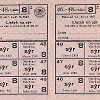 Lístek na sýr pro děti a mladistvé do 20 let 46.-48./8 1.I.-31.III. 1949 , lístek + 2 spojené