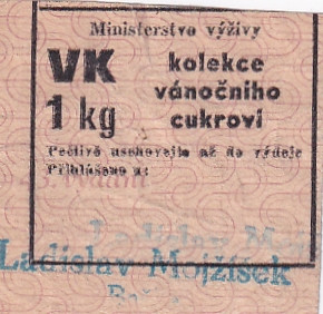 Objednací lístek na kolekci vánočního cukroví 43.vydání říjen 1948 , lístky na 1/4 kg a 1 kg cukroví