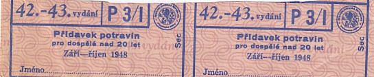 Přídavek potravin pro dospělé nad 20 let 42.-43./P3/1 září-říjen 1948