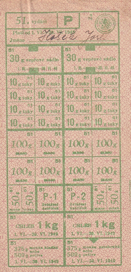 Přídavkový lístek 51./P 1.VI.-30.VI.1949