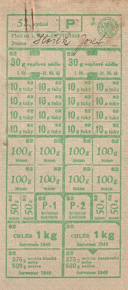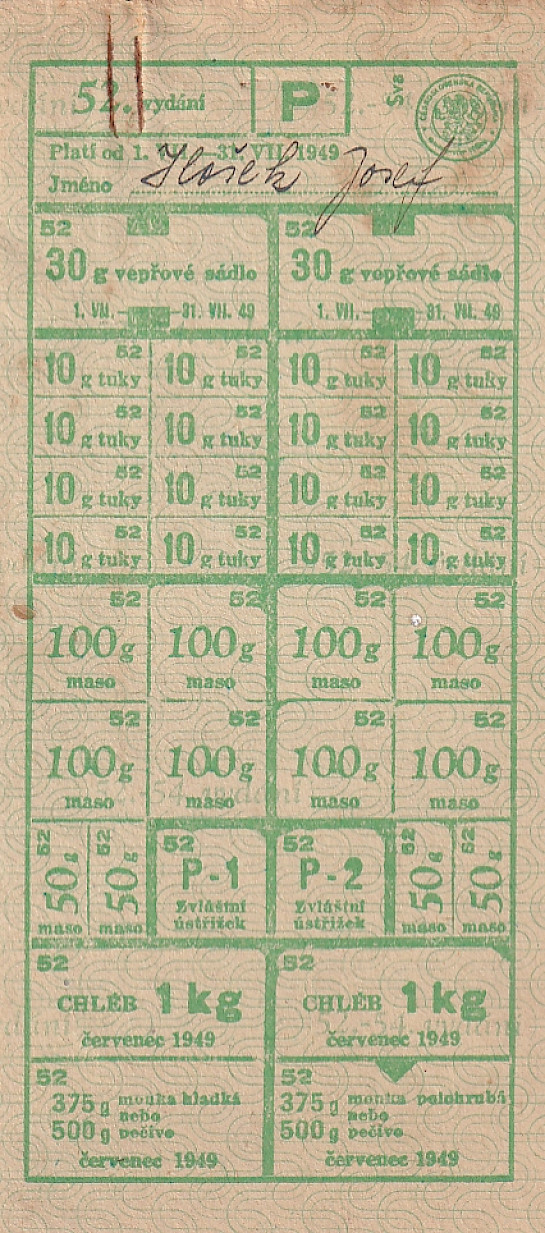 Přídavkový lístek 52./P 1.VII.-31.VII.1949