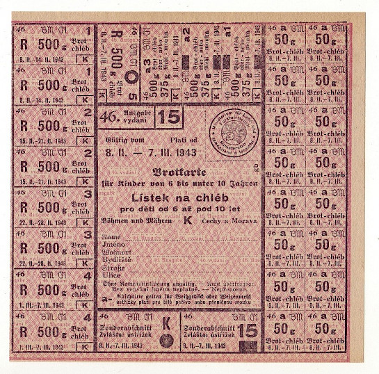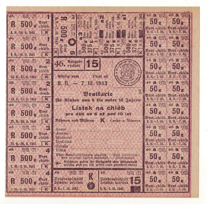 Lístek na chléb pro děti od 6 až pod 10 let 46/15 8.II. - 7.III. 1943