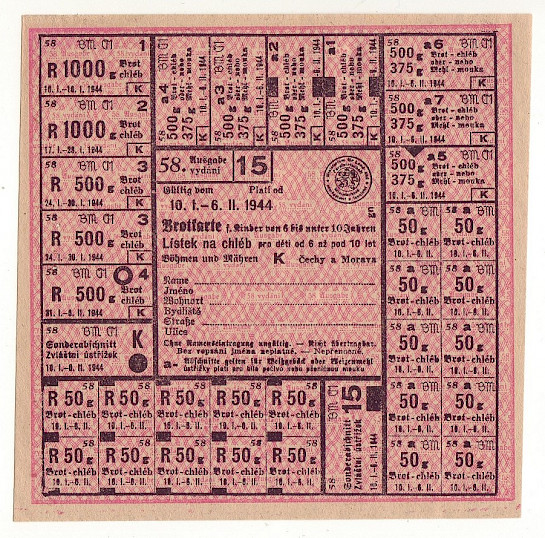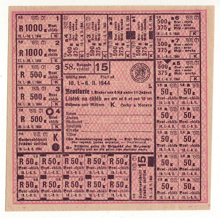 Lístek na chléb pro děti od 6 až pod 10 let 58/15 10.I.- 6.II.1944