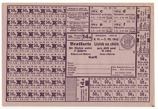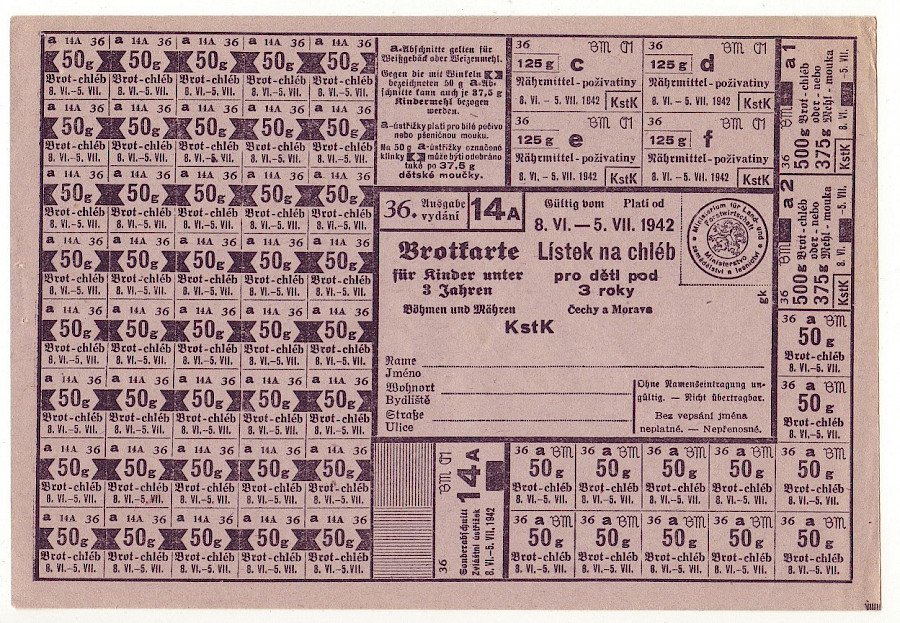 Lístek na chléb pro děti pod 3 roky 36/14A 8.VI. - 5.VII. 1942