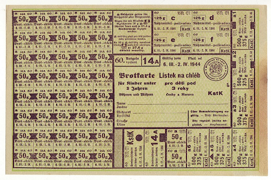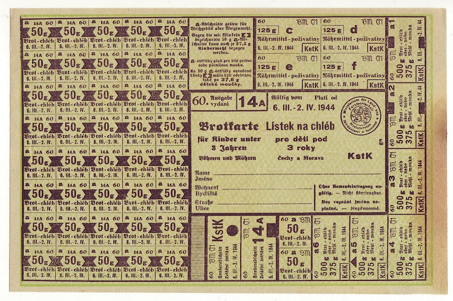 Lístek na chléb pro děti pod 3 roky 60/14A 6.III. - 2.IV. 1944