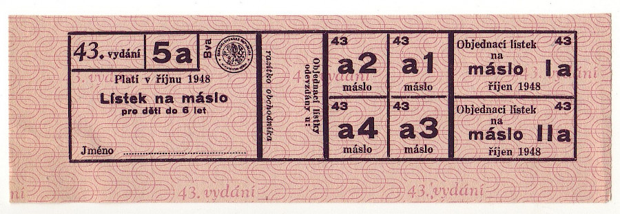 Lístek na máslo pro děti do 6 let 43./5a říjen 1948