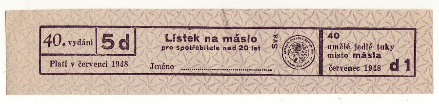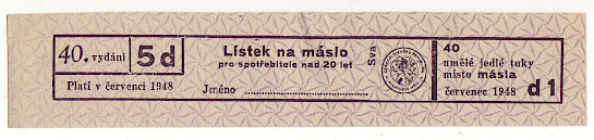 Lístek na máslo pro spotřebitele nad 20 let 40./5d červenec 1948