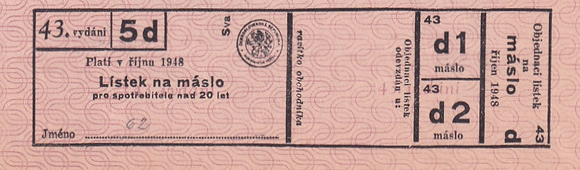 Lístek na máslo pro spotřebitele nad 20 let 43/5d říjen 1948