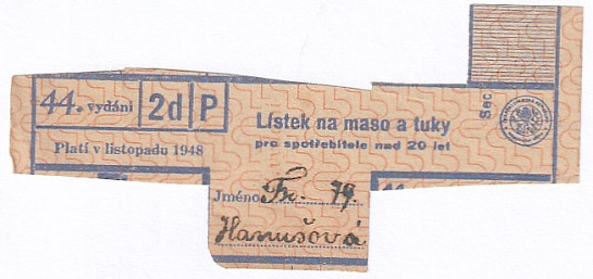 Lístek na maso a tuky pro spotřebitele nad 20 let 44./2d/P listopad 1948