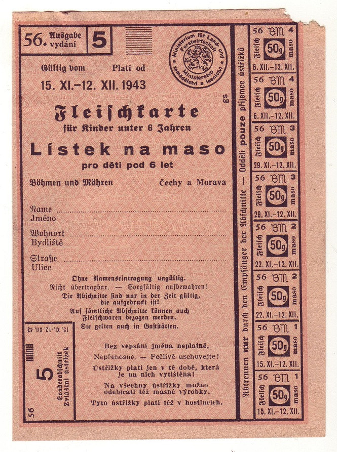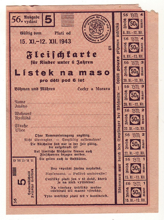 Lístek na maso pro děti pod 6 let 56/5 15.XI. - 12.XII. 1943