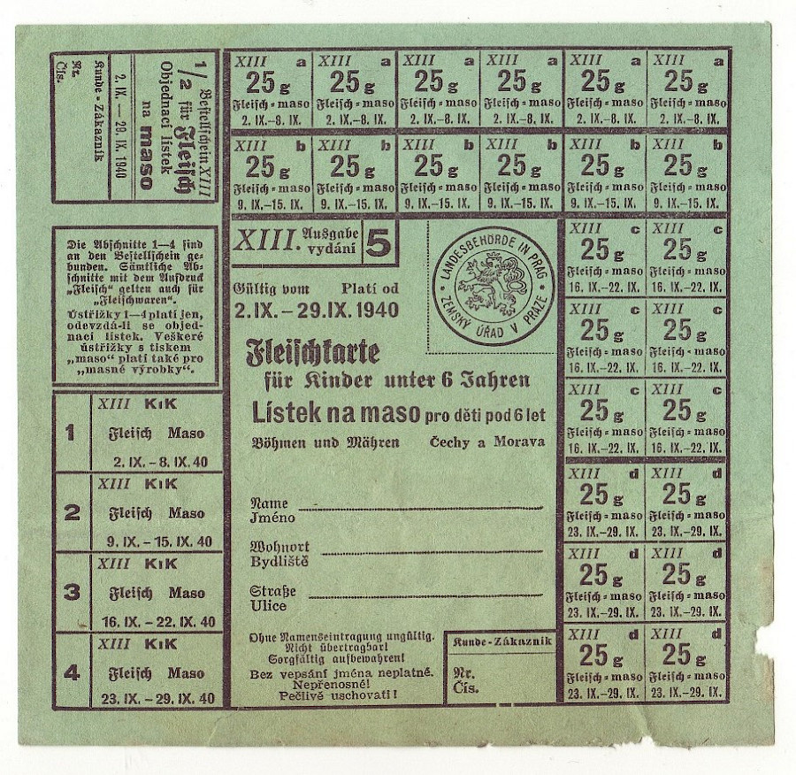 Lístek na maso pro děti pod 6 let XIII/5 2.IX. - 29.IX.1940