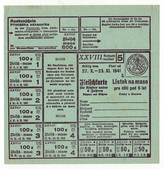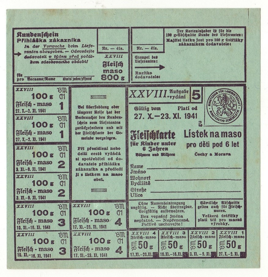 Lístek na maso pro děti pod 6 let XXVIII/5 27.X. - 23.XI.1941