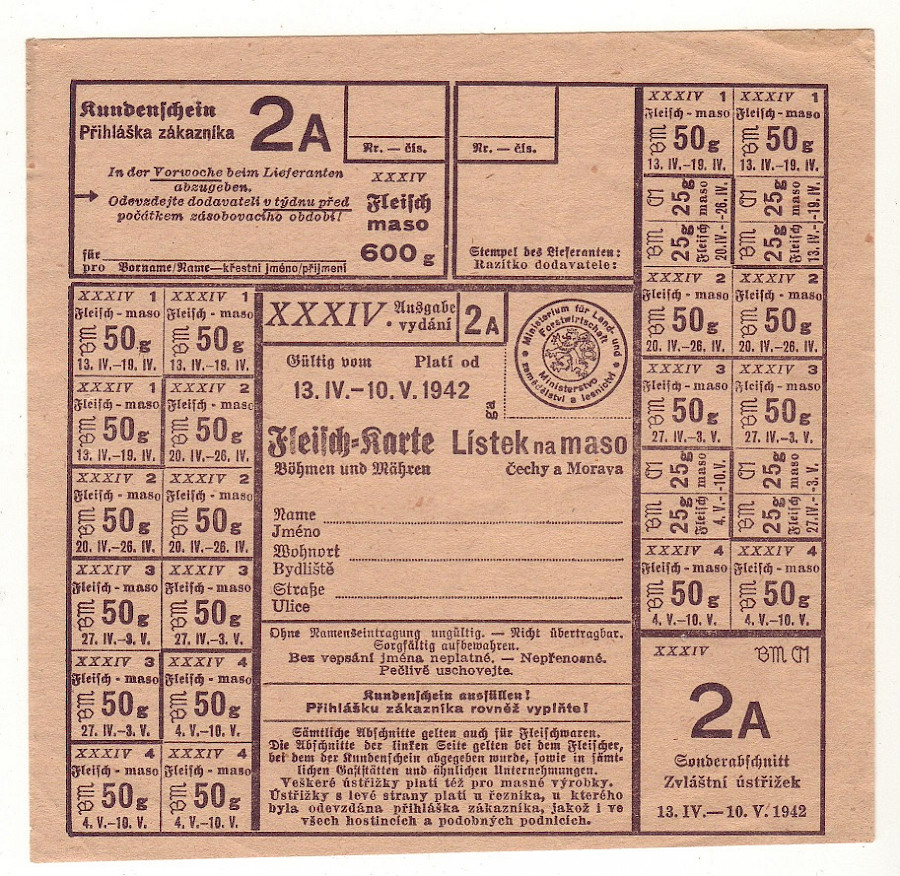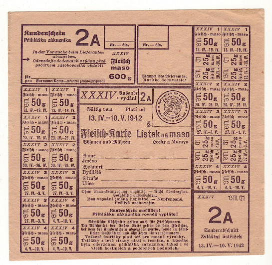Lístek na maso XXXIV/2A , 13.IV - 10.V. 1942