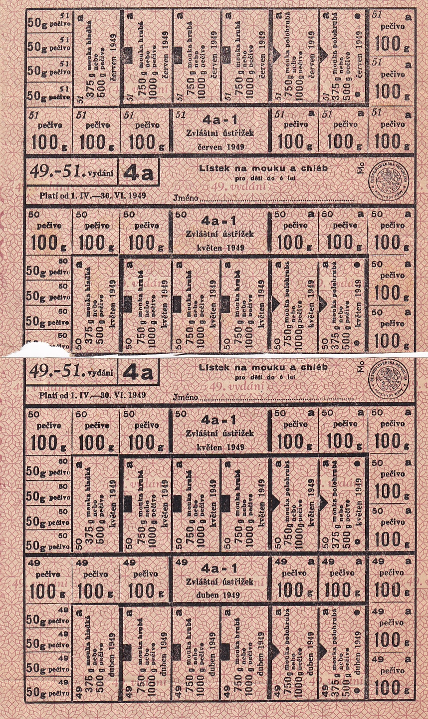Lístek na mouku a chléb pro děti do 6 let 49.-51./4a 1.IV.-30.VI. 1949