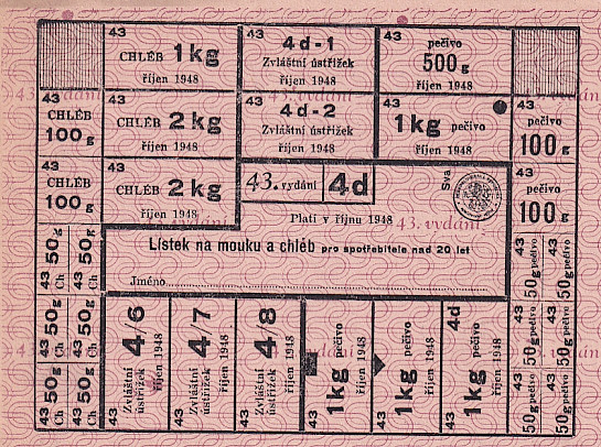 Lístek na mouku a chléb pro spotřebitele nad 20 let 43/4d říjen 1948