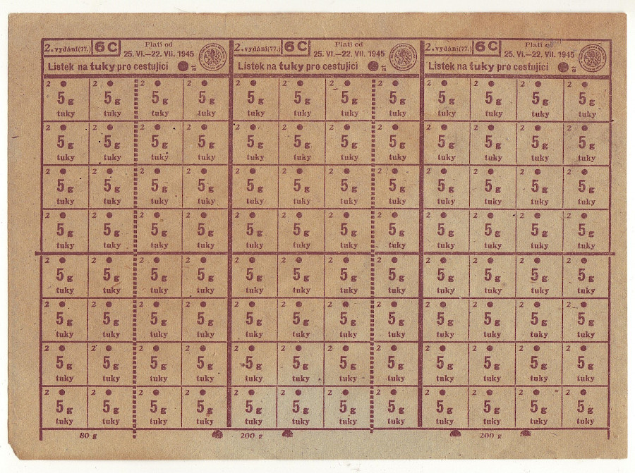 Lístek na tuky pro cestující 76/6C 25.VI.-22.VII.1945