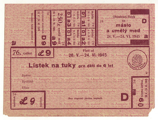 Lístek na tuky pro děti do 6 let 76/L9 28.V.-24.VI.1945