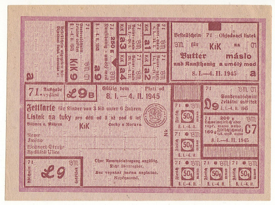 Lístek na tuky pro děti od 3 až pod 6 let 71/L9B 8.I.- 4.II.1945