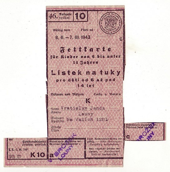 Lístek na tuky pro děti od 6 až pod 14 let 46/10 8.II. - 7.III. 1943