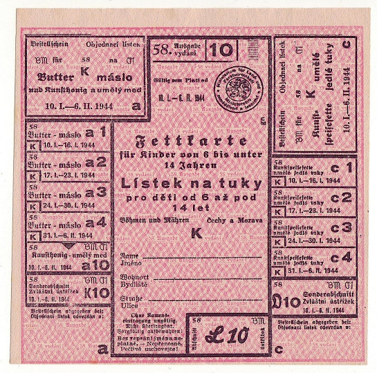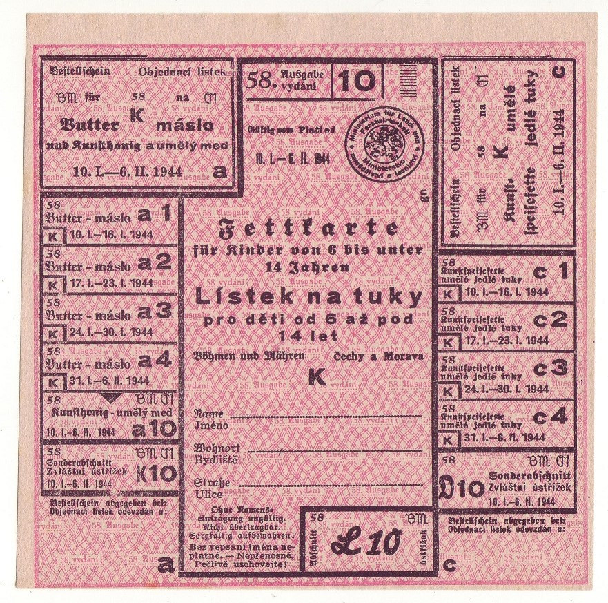 Lístek na tuky pro děti od 6 až pod 14 let 58/10 10.I.- 6.II.1944
