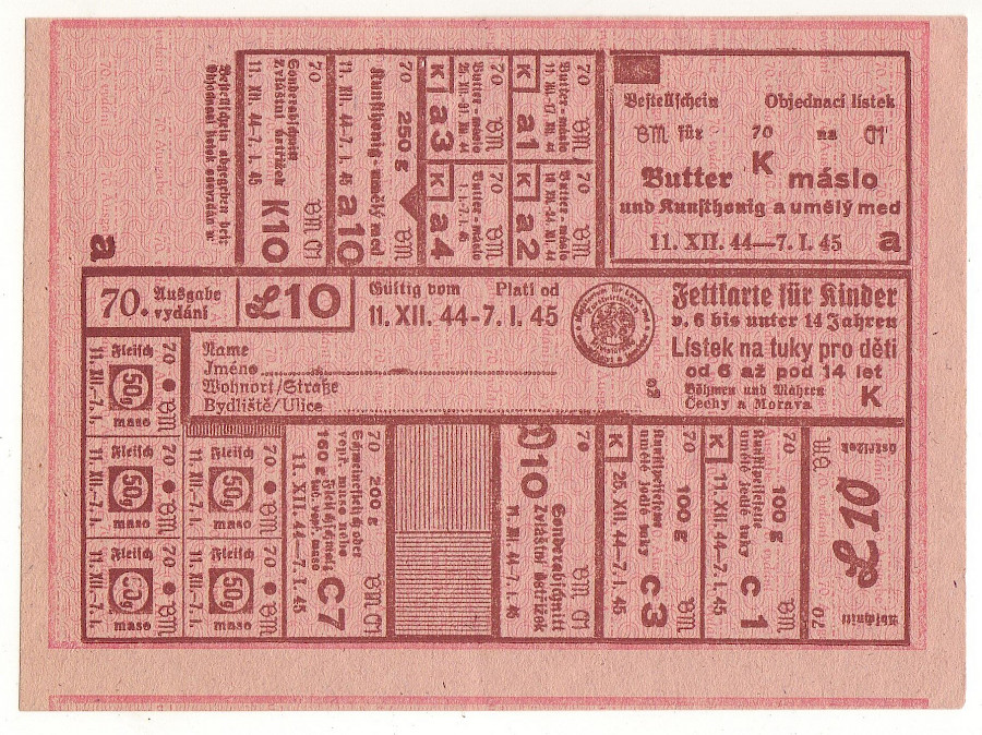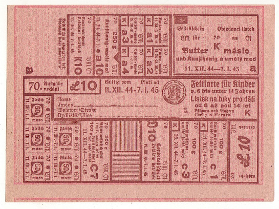 Lístek na tuky pro děti od 6 až pod 14 let 70/L10 11.XII.1944 - 7.I.1945