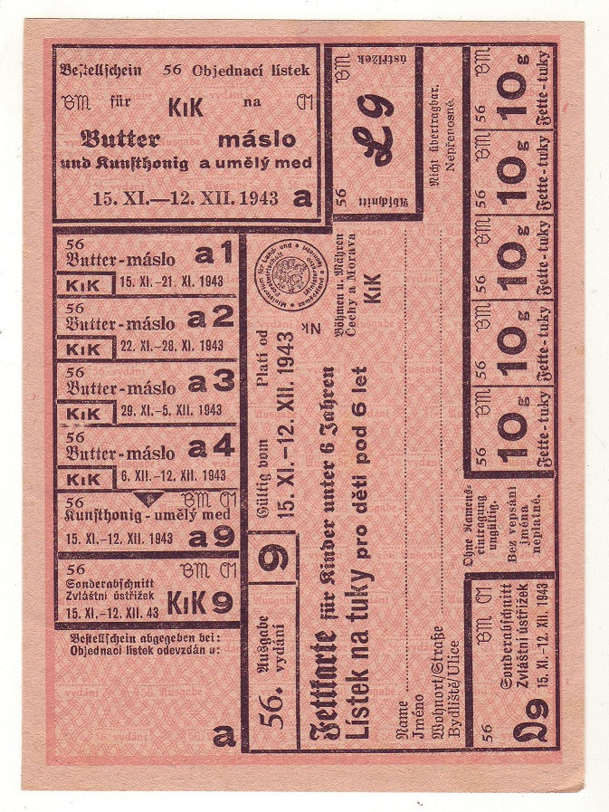 Lístek na tuky pro děti pod 6 let 56/9 15.XI. - 12.XII. 1943