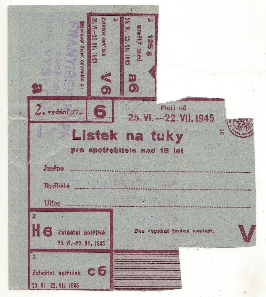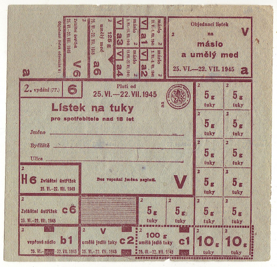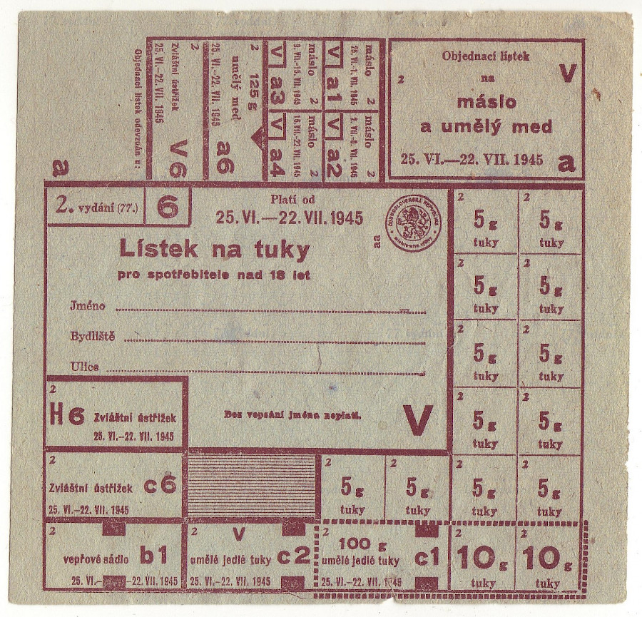 Lístek na tuky pro spotřebitele nad 18 let 2.(77.)/6 1945