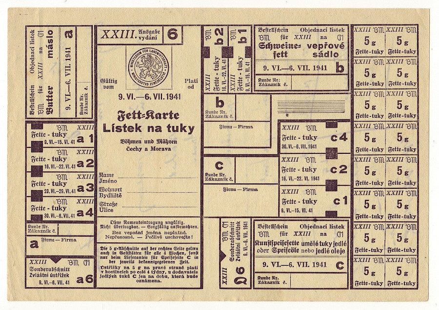 Lístek na tuky XXIII/6 9.VI. - 6.VII.1941