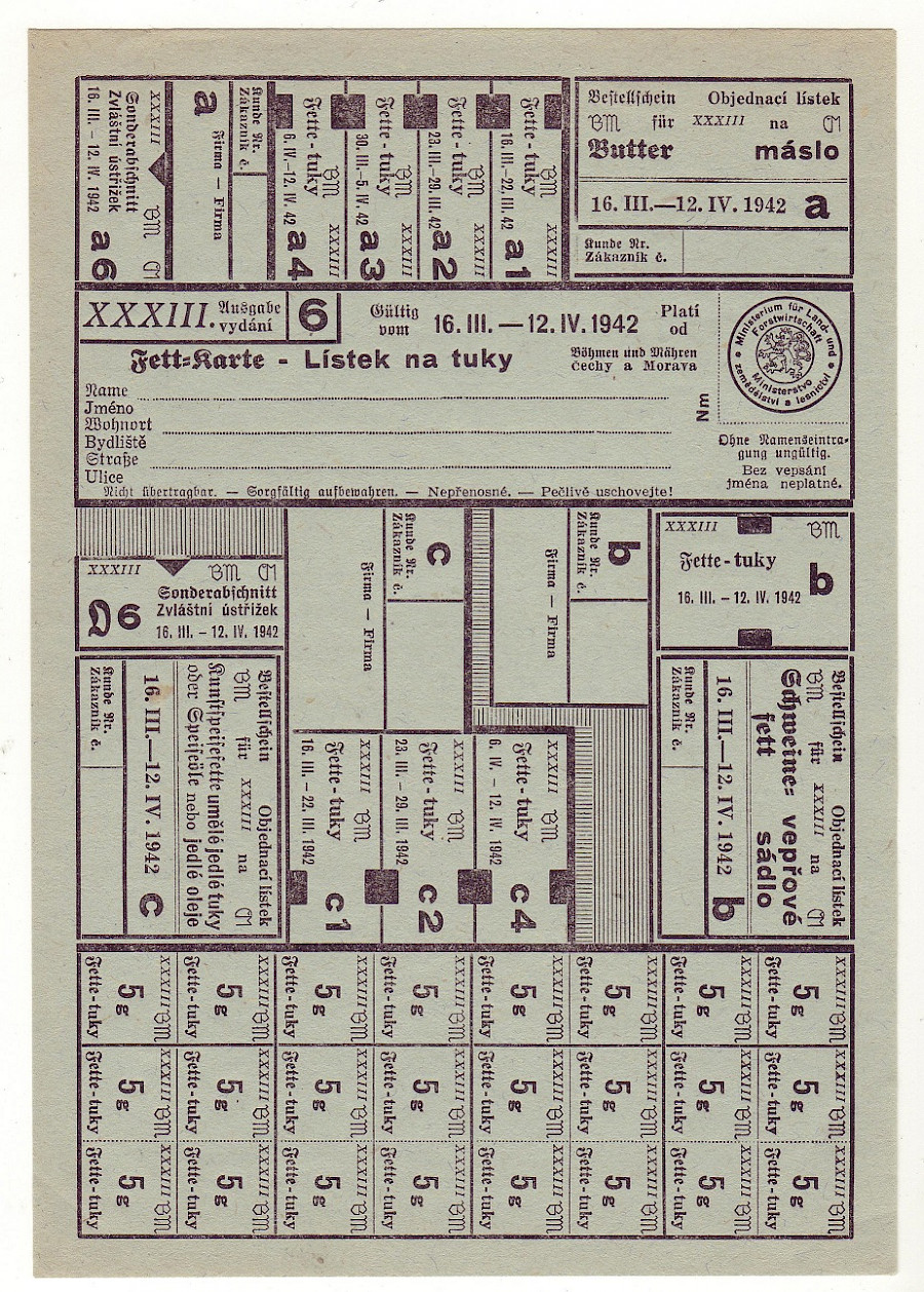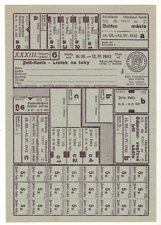 Lístek na tuky XXXIII/6 , 16.III. - 12.IV. 1942