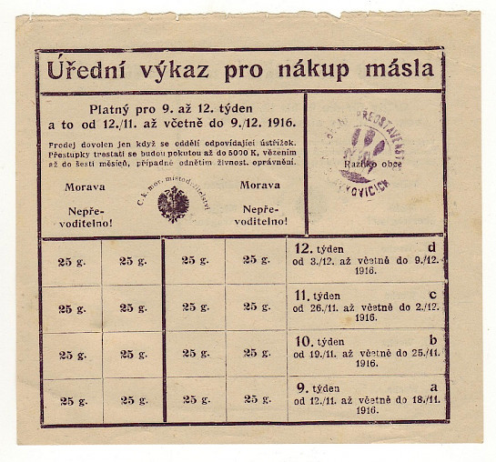 Morava - Úřední výkaz pro nákup másla 9. až 12. týden 1916