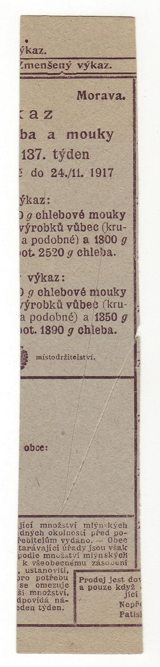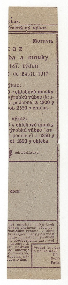Morava - Výkaz spotřeby chleba a mouky 136. a 137. týden 1917