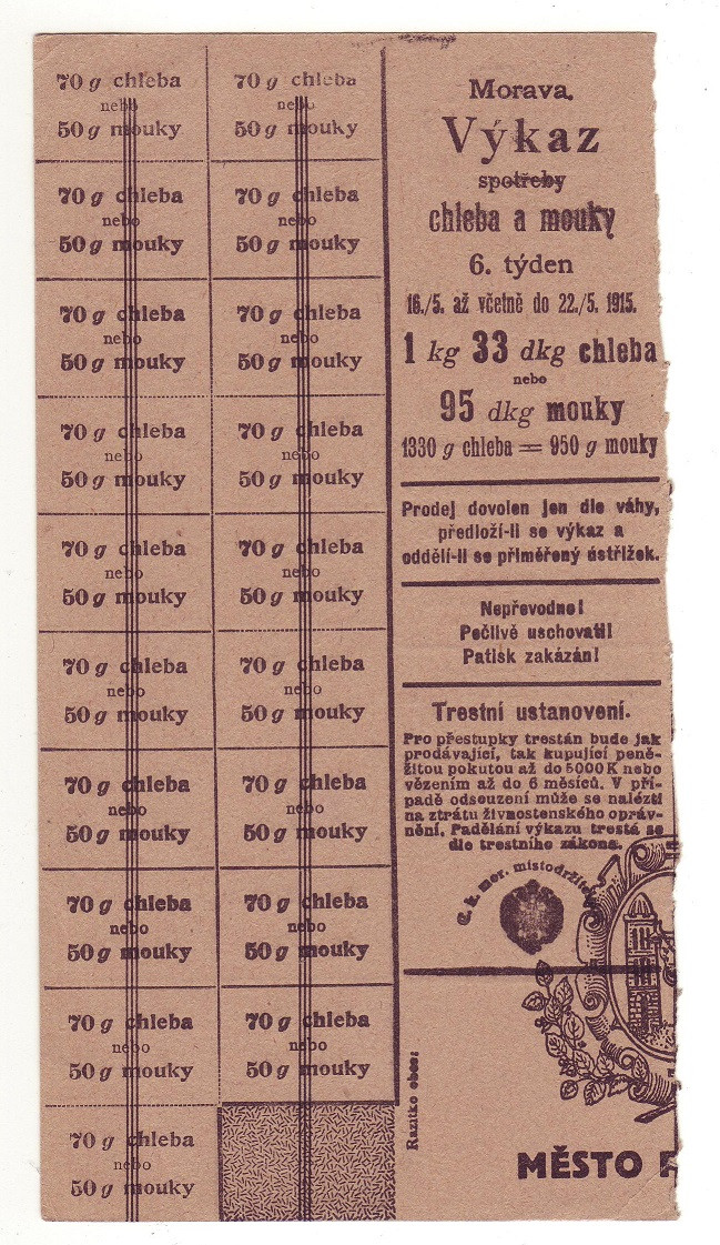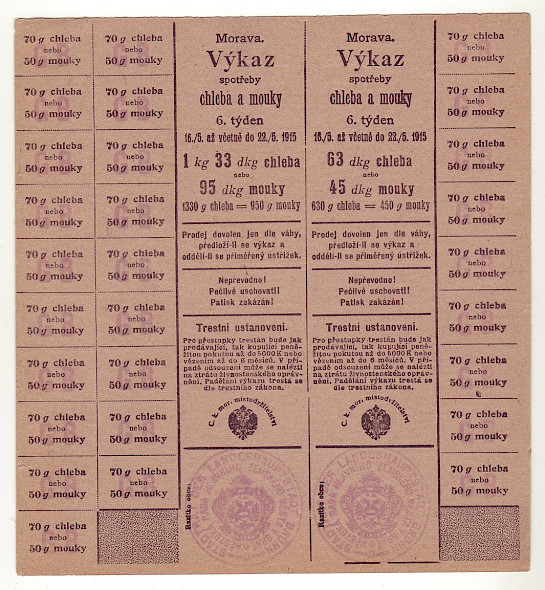Morava - Výkaz spotřeby chleba a mouky 6.týden 1915