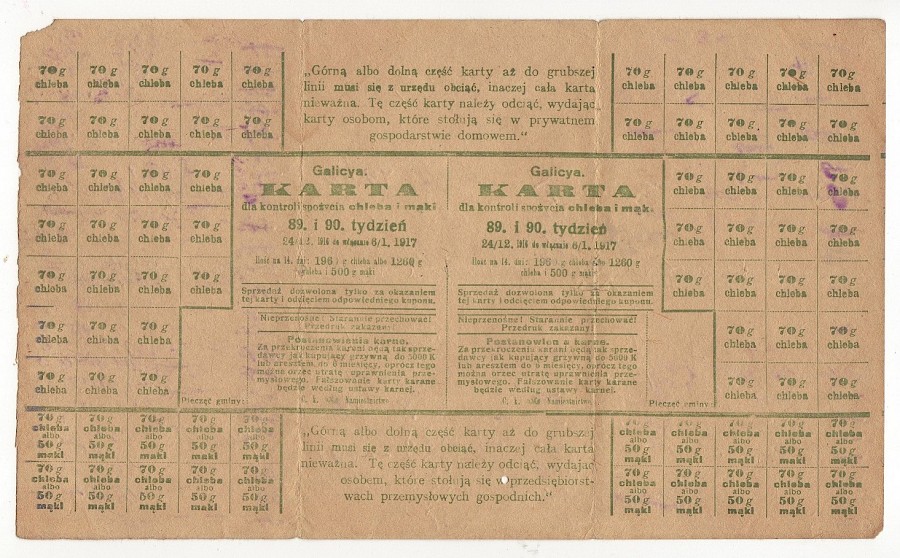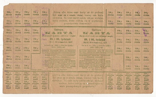 Výkaz spotřeby chleba a mouky 89. a 90. týden 24.12.1916 až 6.1. 1917