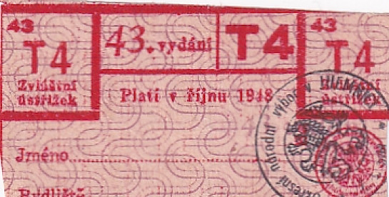 Přídavkový lístek pro těžce pracující 43/T4 1948