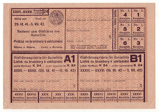 Průkaz na brambory k uskladnění XXVII.-XXXVI./24 29.IX.1941 - 5.VII.1942