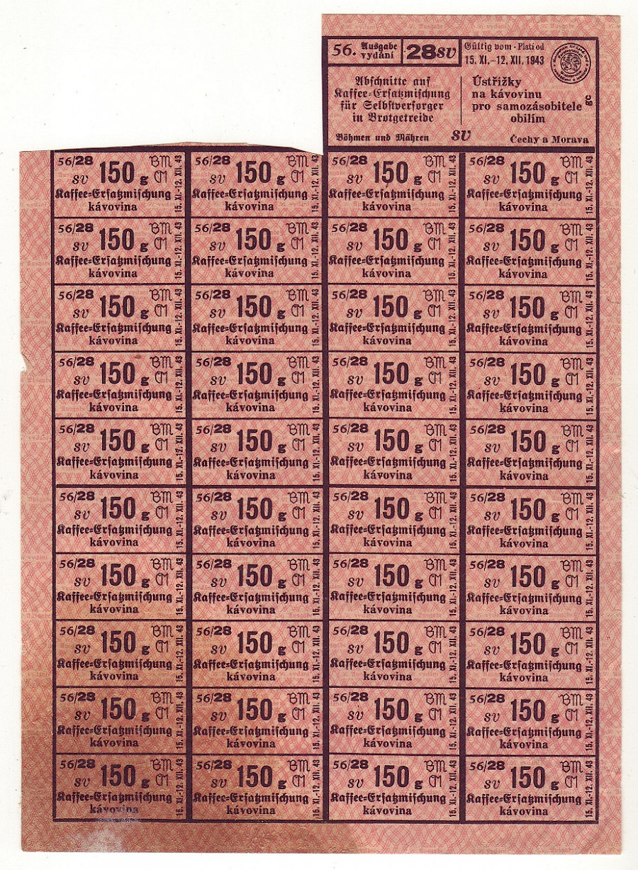 Ústřižky na kávovinu pro samozásobitele obilím 56/28sv 15.XI. - 12.XII. 1943