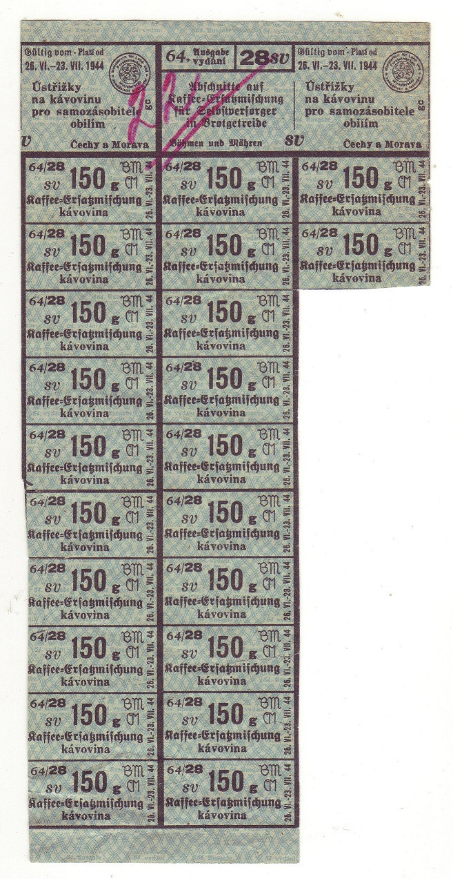 Ústřižky na kávovinu pro samozásobitele obilím 64/28sv 26.VI. - 23.VII. 1944 - neúplný,ostřižený