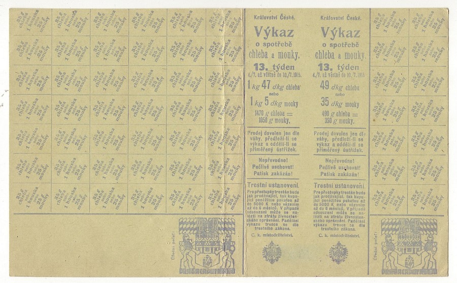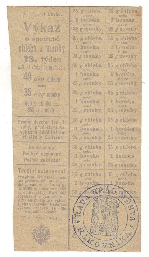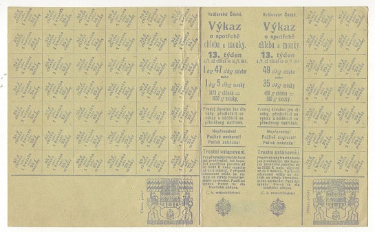 Výkaz o spotřebě chleba a mouky 13.týden,verze pro Prahu + část lístku Rakovník